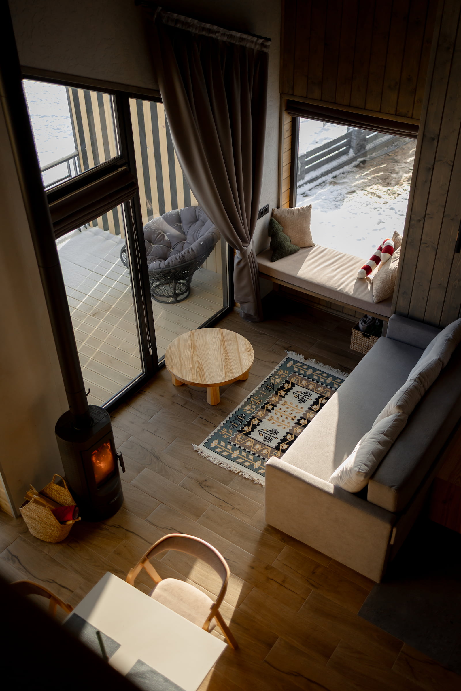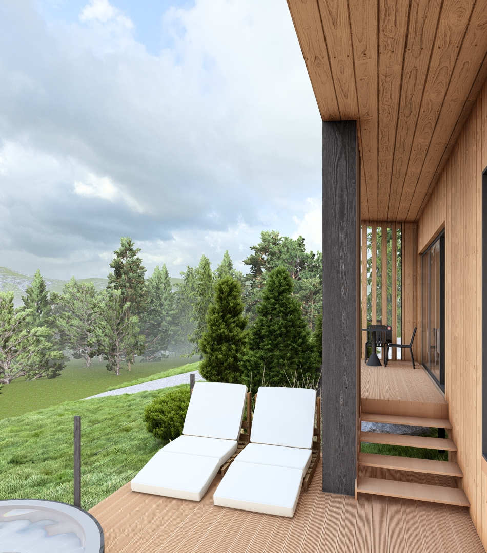 Просторне місце площею 35 м² з вітальнею, спальнею та лофт-галереєю вміщує 6-7 гостей. Ідеально підходить для сімей або компаній. Має традиційний дерев’яний інтер’єр, повністю обладнану кухню та чудовий вид на природу.