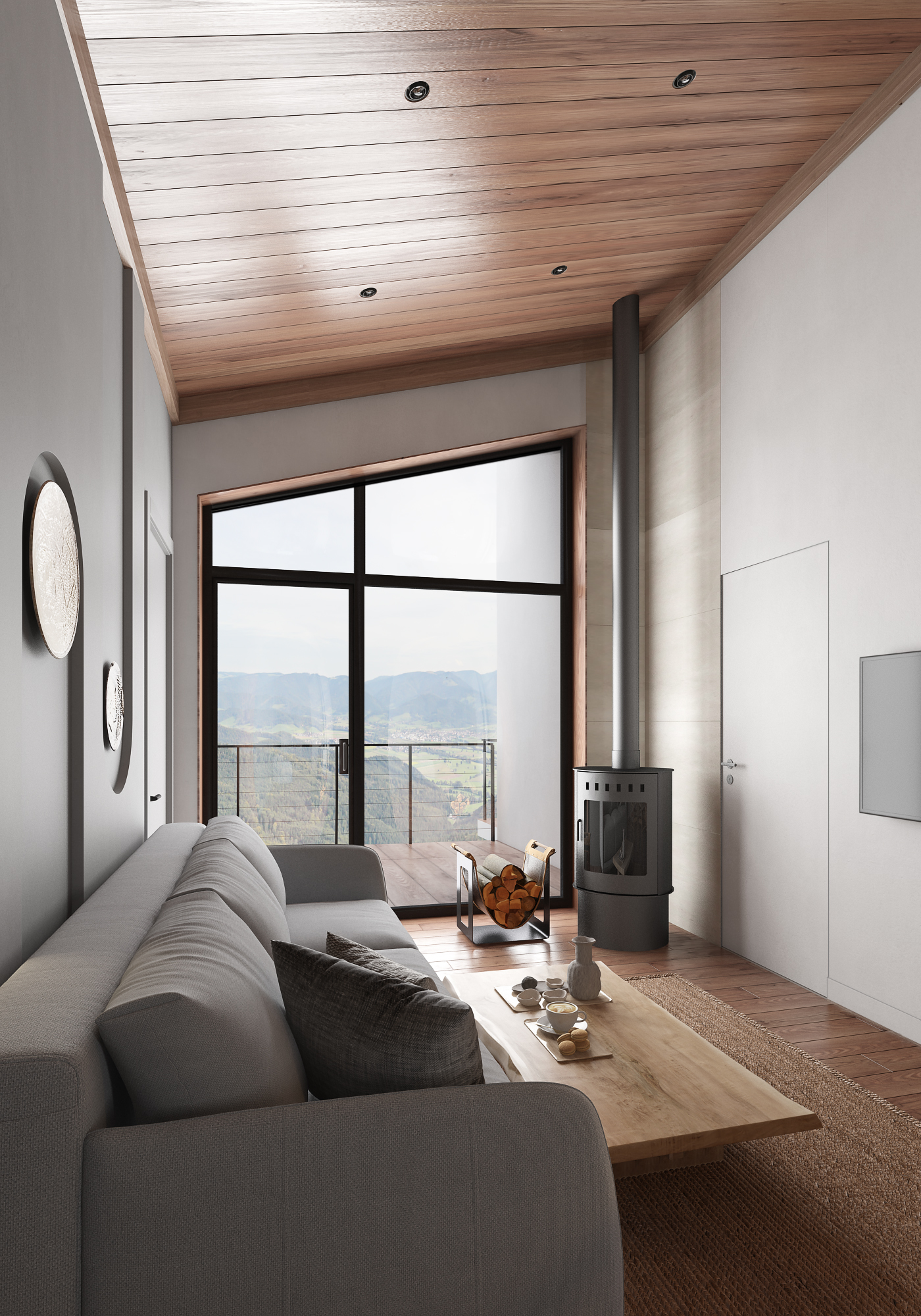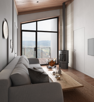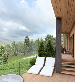 This cozy 31 m² wooden chalet with a living room, bedroom and private terrace is ideal for up to 4 guests. The chalet has a fully equipped kitchen, a luxurious bathroom and a panoramic porch, allowing you to enjoy the mountain views with full immersion.